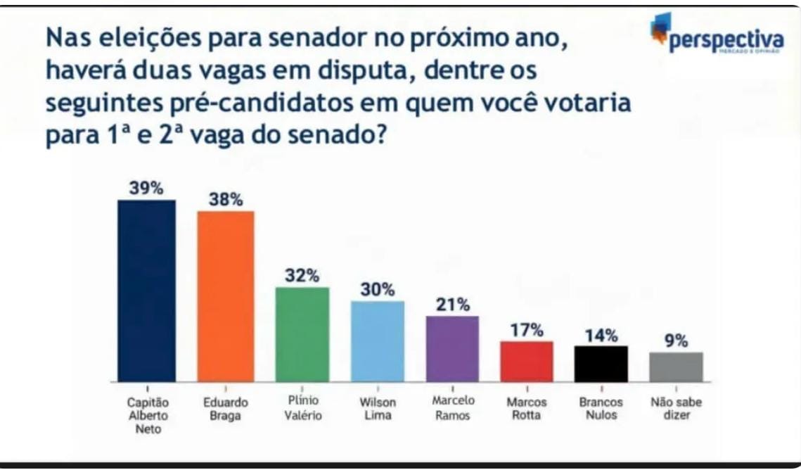 A evolução dos percentuais também reafirmam a posição de destaque do deputado entre os eleitores da direita amazonense e credenciam seu nome como um dos mais competitivos do pleito, além de consolidar a posição de representante da direita na disputa ao Senado Federal pelo Amazonas.