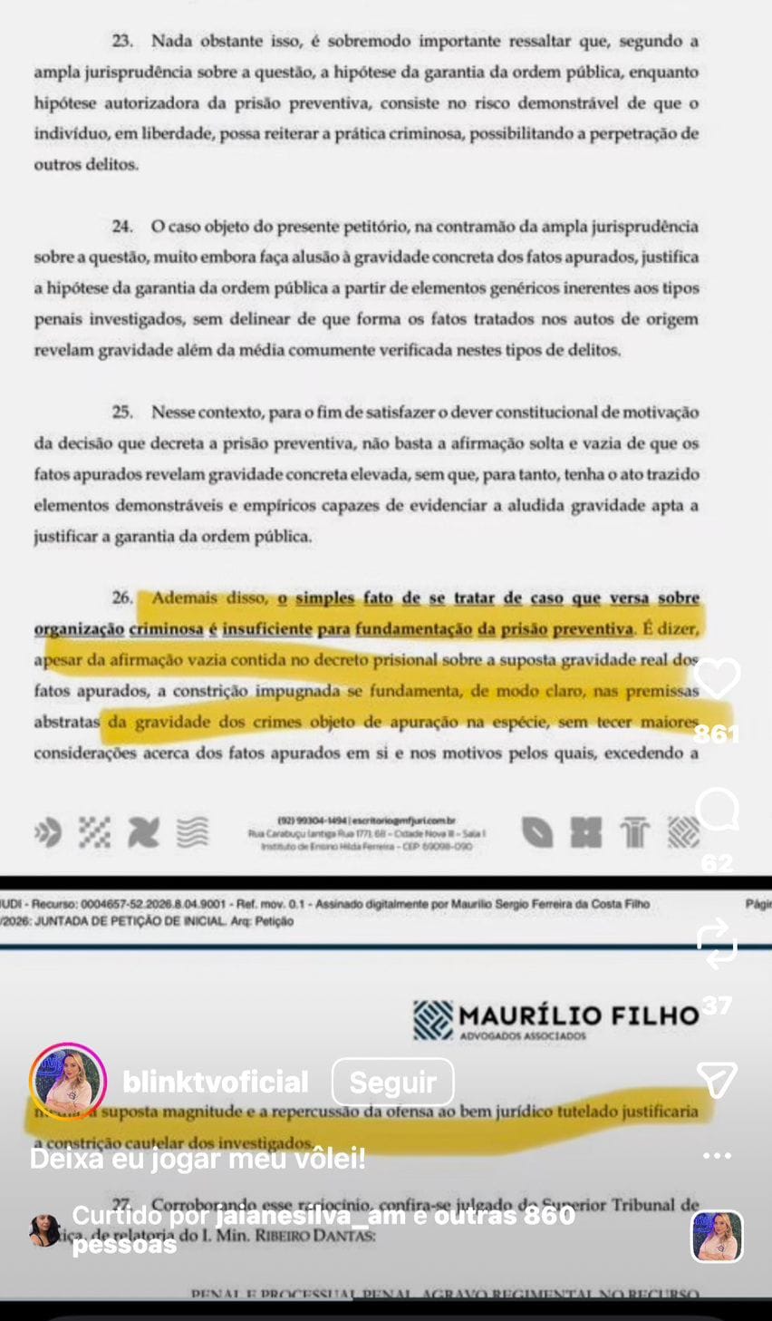 O movimento ocorre em paralelo ao discurso adotado por David Almeida, que reagiu publicamente às investigações com críticas às autoridades responsáveis pelo caso. A sucessão de medidas judiciais e declarações políticas sinaliza uma estratégia coordenada de contenção de danos, na qual o embate deixa o campo estritamente jurídico e passa a integrar também a arena narrativa, em meio ao desgaste provocado pelas prisões e pelas conexões reveladas no curso da operação.