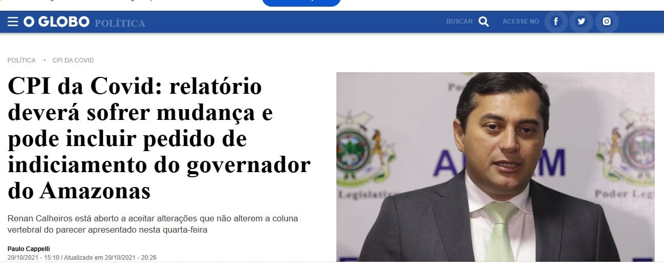 O Globo repercute investigações paradas de David Almeida e Wilson Lima