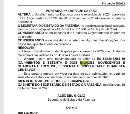 O Diário Oficial do Estado do Amazonas publicou no dia 29 de novembro mais um ato que revela a saúde financeira do governo do estado.